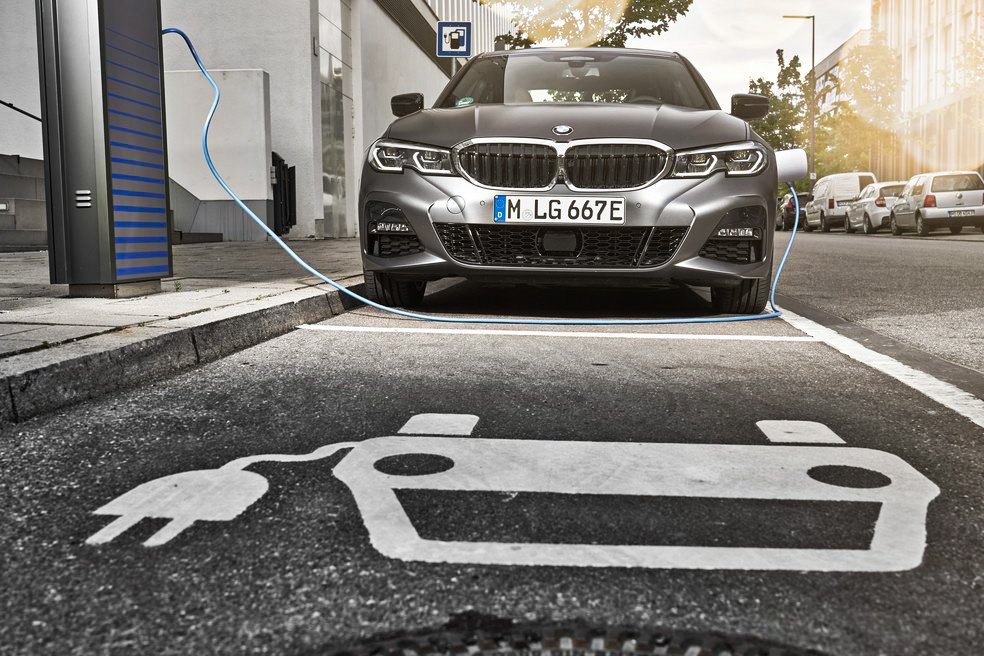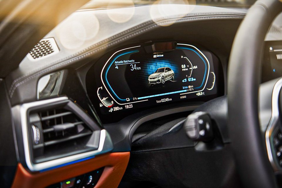 A bateria de 12,0 kWh pode ser recarregada em tomadas domésticas convencionais com o uso de um cabo de carregamento padrão que já vem com o veículo. A tomada para recarregar está localizada no porta-malas. Também é possível carregar a bateria do BMW 300e M Sport utilizando o próprio motor a combustão. Basta ativar a função battery control, que mantém ou mesmo recarrega a bateria para um nível definido pelo cliente.